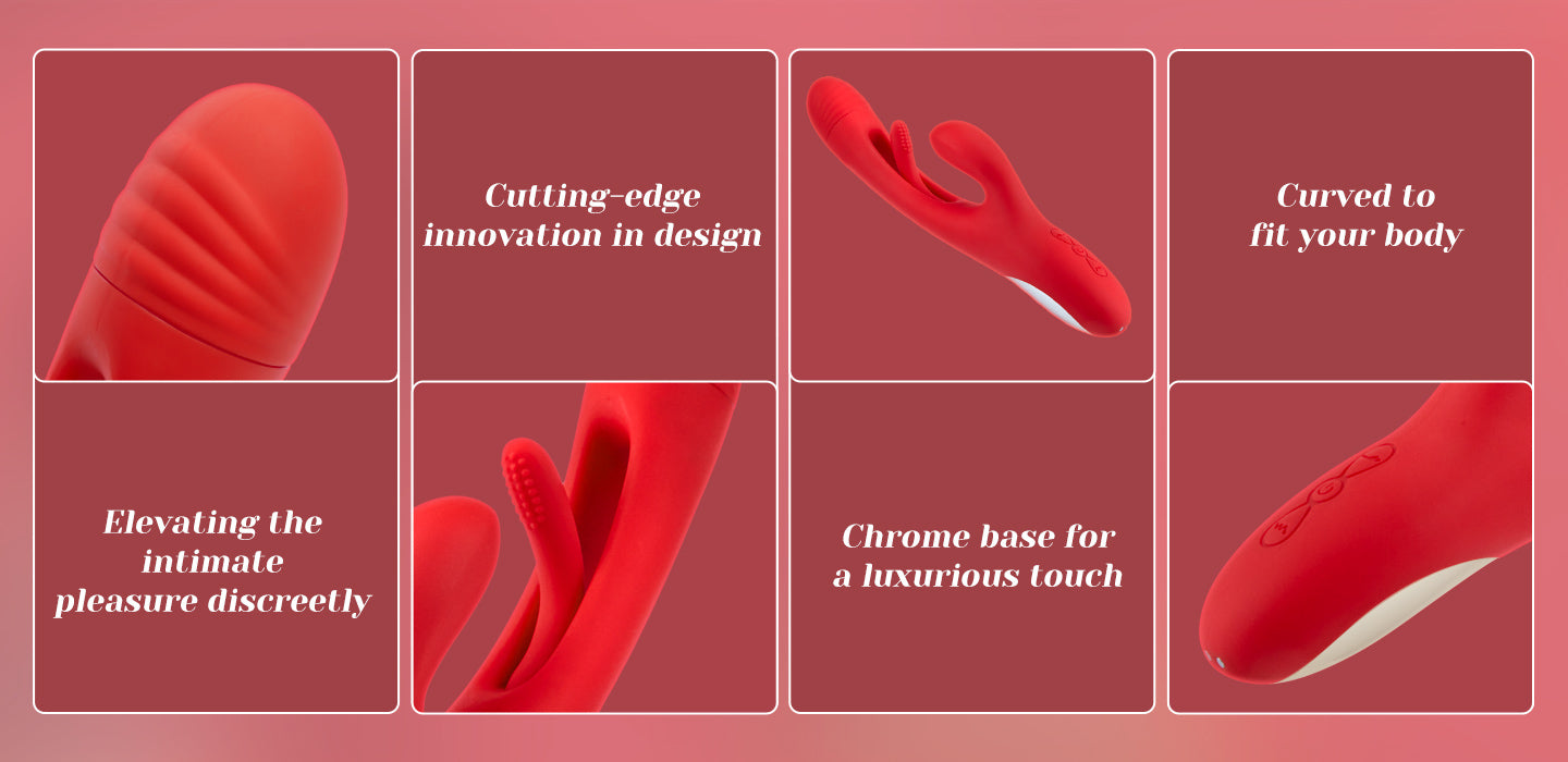 Are you tired of using traditional AV vibrators, look over here! This innovatively designed G-spot stimulating rabbit vibrator features a hollow design with a tongue-like tapping function that mimics the sensation of a finger. On top of that, a hidden tongue is cleverly integrated into the vibrating shaft. With 7 adjustable tapping modes, this erotic toy for women delivers personalized pleasure based on individual preferences. Made from the finest 100% body-safe silicone. This vibrator is a work of art, with a chrome-plated look at the base and a same-color design at the tip for a luxurious look. 100% waterproof and submersible, so you can take it with you in the tub or shower. After use, the vibrator can be easily and thoroughly cleaned with warm soapy water or a quality toy care solution/foam.