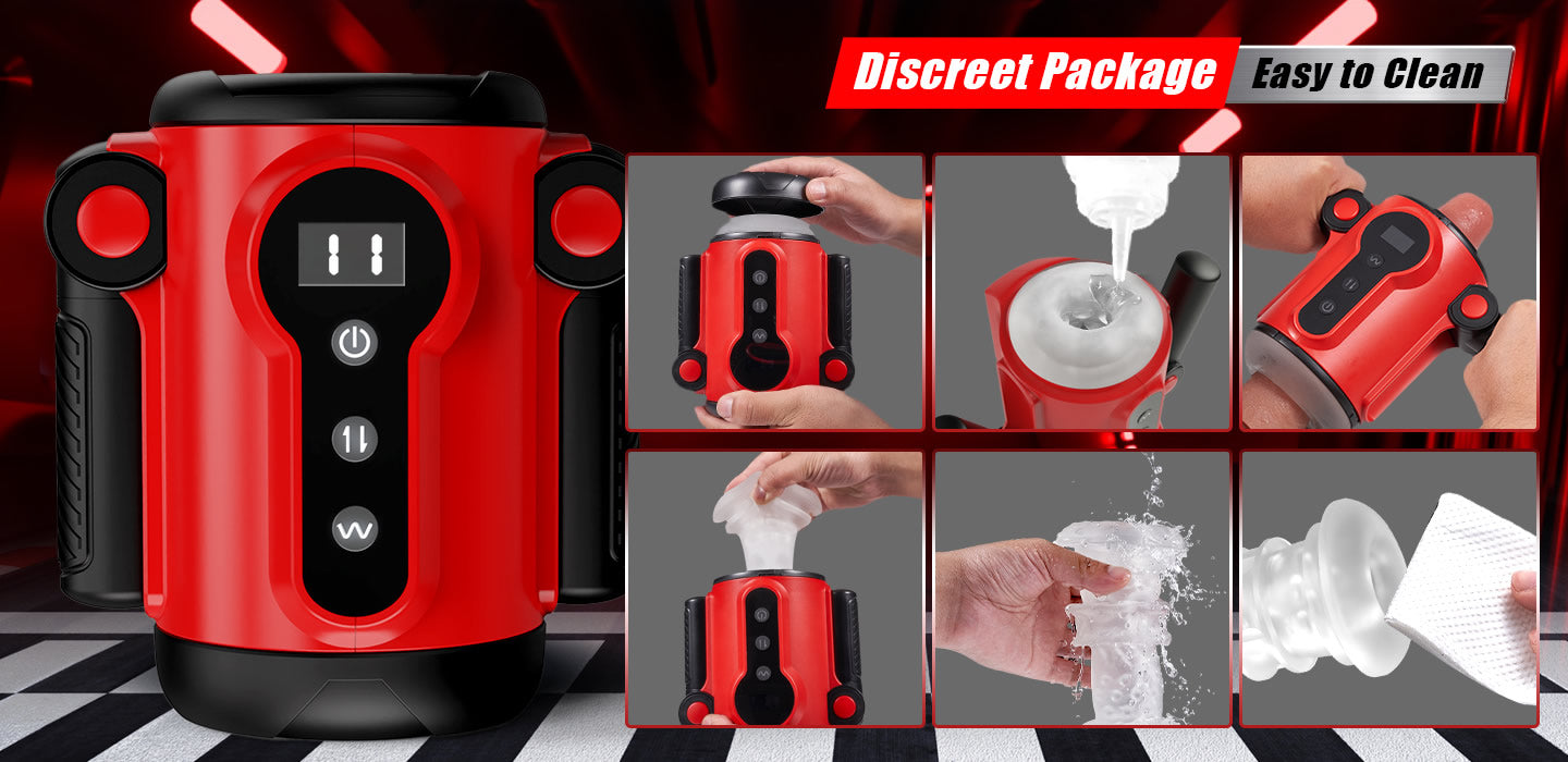 The dual handle design makes it easy to operate, and you can manually control the frequency of telescoping, giving you a variety of fun ways to bring you a different and novel masturbation experience.