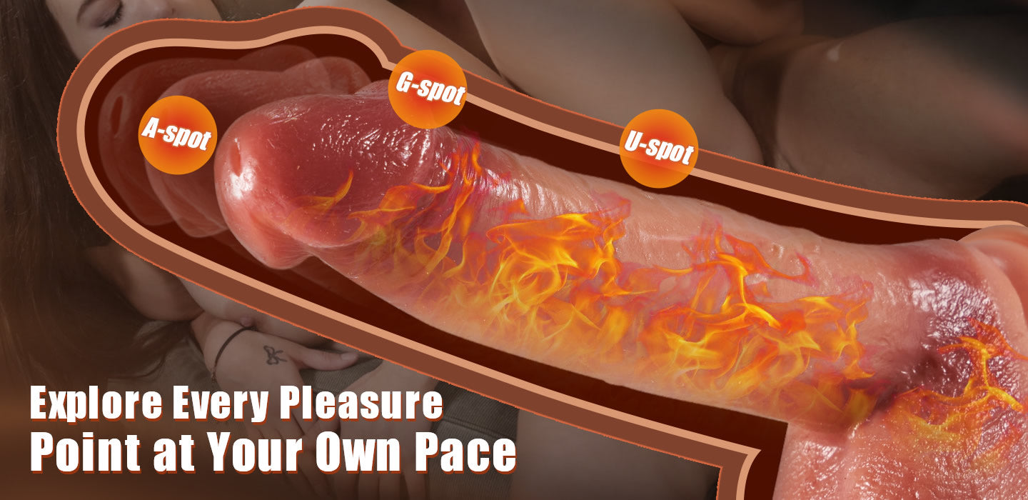 The built-in elastic skeleton is as flexible as a finger bending curvature to precisely explore and stimulate your every erogenous point to ensure you get maximum satisfaction. 1.57 inches in diameter, suitable for a wide range of people, both men and women. Whether you're desire for prostate or G-spot stimulation, this dildo can do all hearts to satisfied you. 5-minute heat-up at 100.4 ℉, enjoy a fiery massage stimulation instantly to enhance your pleasure experience. The powerful suction cups and 15-meter remote control provide you with unlimited play possibilities waiting to be unlocked. You can explore various positions and rhythms to fulfill all your desires.