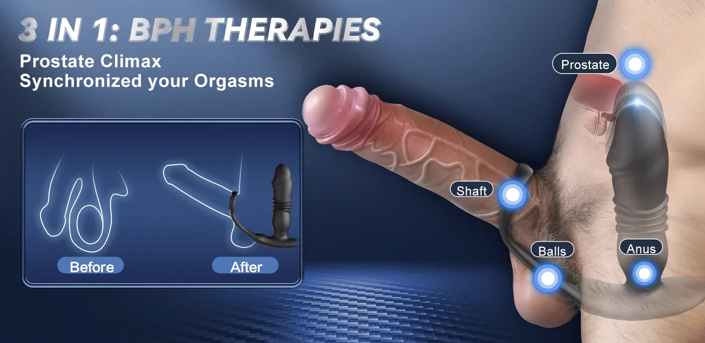 SAUL is equipped with robust dual motors to strongly massage the prostate,, anus, and perineum, plus 12 thrusting & 3 vibrating modes, orgasm burst mode, will give you the ultimate mixed orgasm.