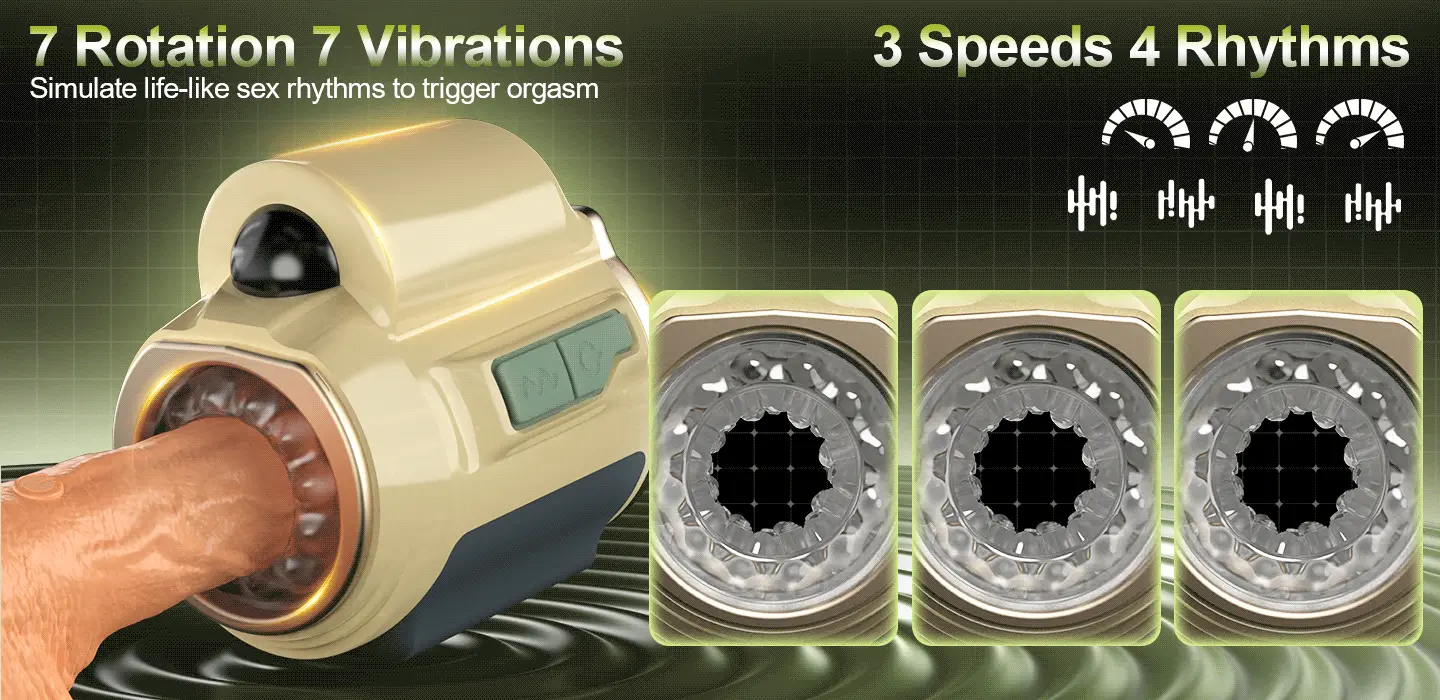 - 7 rotations with 3 speeds 4 rhythms, enjoy a life-like sex experience.