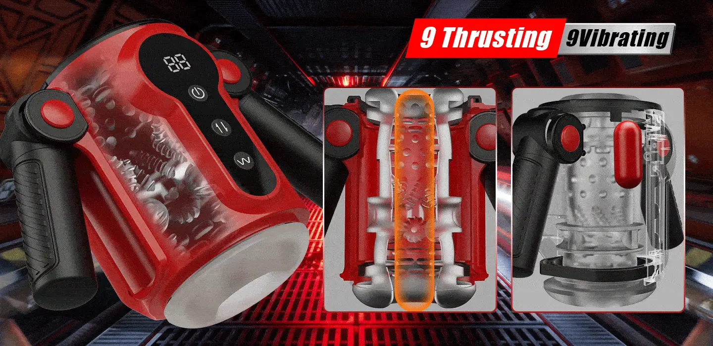 Features:This uniquely designed masturbator is a perfect therapist, 9 thrusting and 9 vibration provide a full range of training and masturbation experiences to both increase your pleasure and enhance your penile stamina.